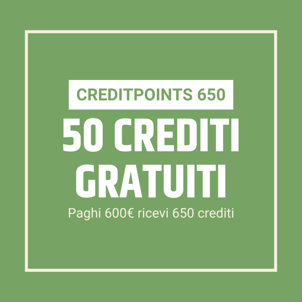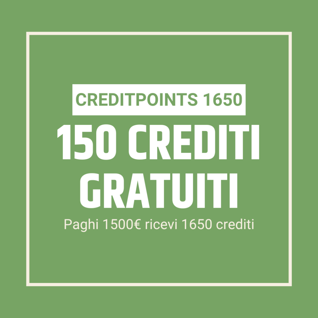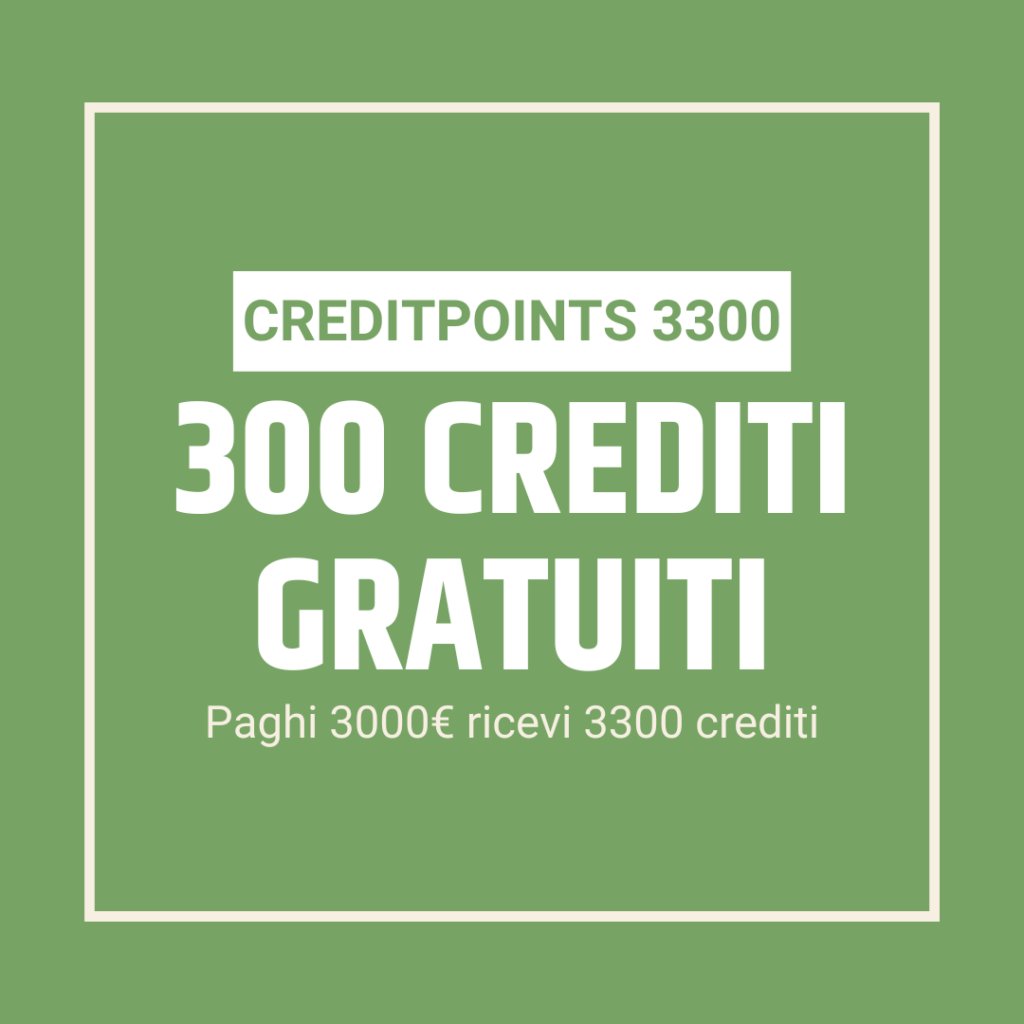 Scegli il pacchetto Creditpoints che fa per te ed ottieni un extra credito fino a 300€ oppure richiedi un pacchetto personalizzato se devi acquistare grandi quantità!